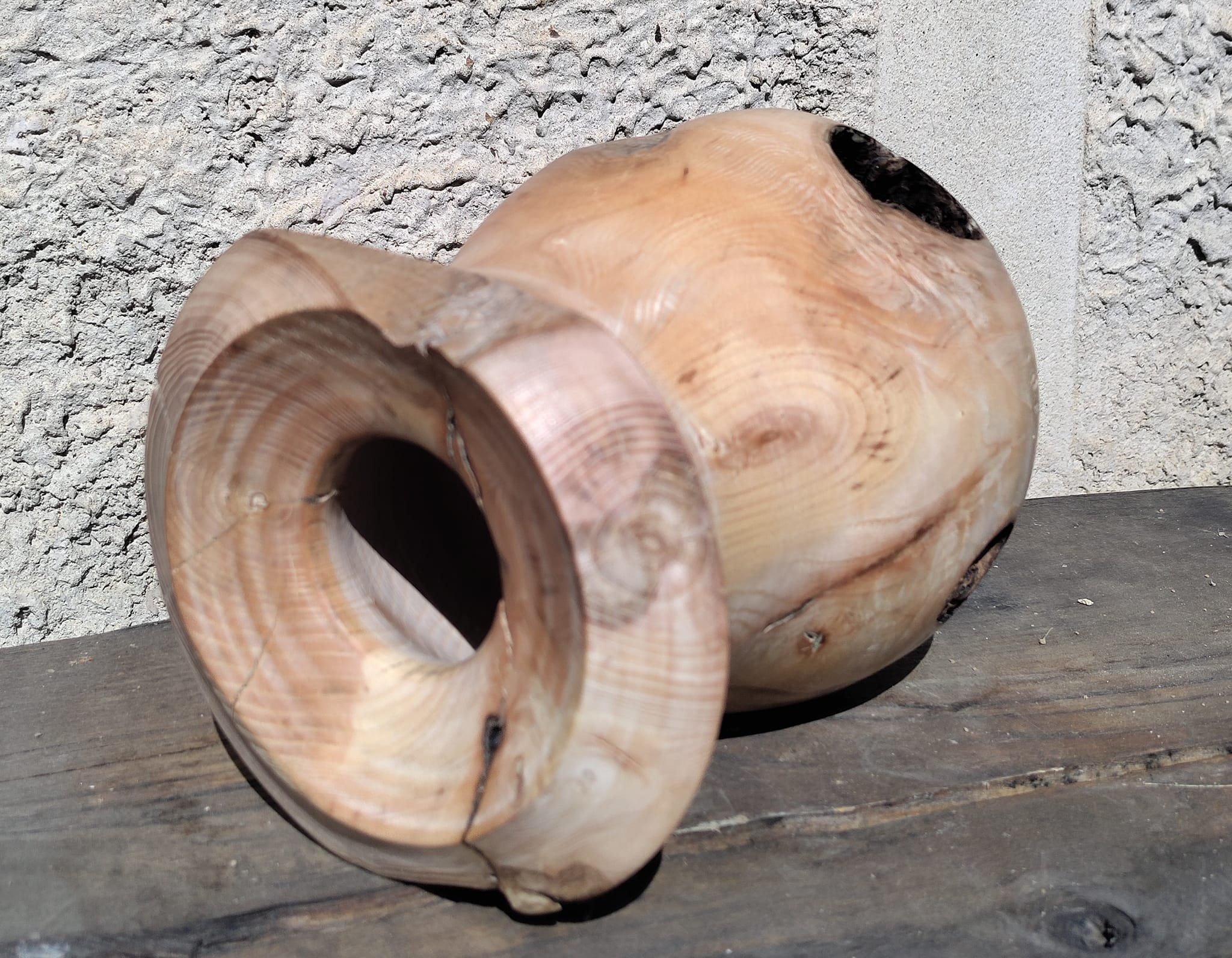 Vase à trou en frêne (tourné dans un noeud)